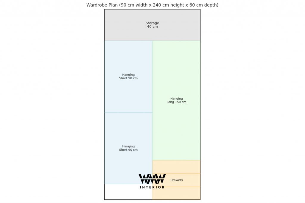 • 210–240 cm → wardrobe full hingga plafon, maksimal untuk penyimpanan.
